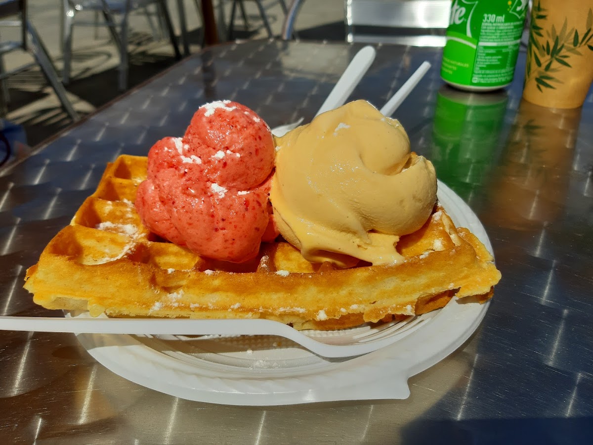 Crepes & Waffles el molino sits along C. la Briota in Costa Teguise, fitting neatly into the cafe and coffee shop scene with a clear focus on quick, sweet bites rather than lingering coffee sessions. The main draw here is the live preparation of crepes and waffles, which happens fast enough to catch your eye but also feels surprisingly skilled — you can watch the staff expertly fold and fill crepes or whip up waffles topped with vibrant strawberries or generous scoops of ice cream and Nutella. This fast-paced setup draws a steady flow of beachgoers and families, especially after a day spent outdoors, looking for a straightforward, sweet treat to round out their afternoon.